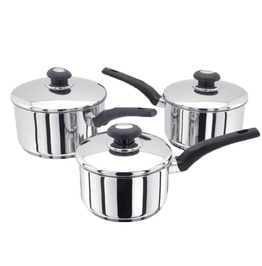 Tags: 3 piece set, stainless steel, saucepan, saucepans, lids, cookware, kitchen,