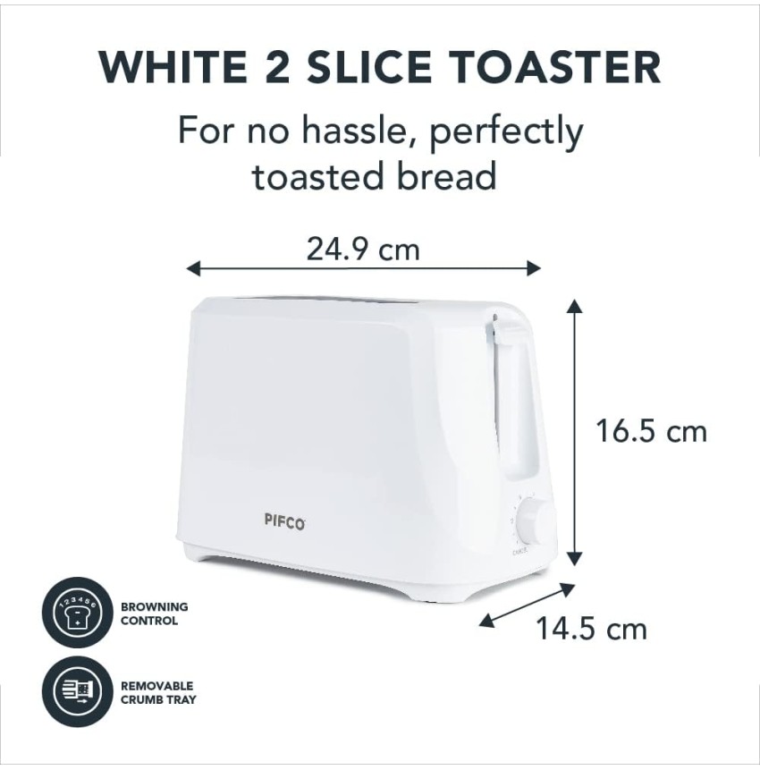 PIFCO® Functional essential electrics in simple clean lines and bright gloss white. Essential yet stylish this two-slice toaster is must have for making your morning toast!