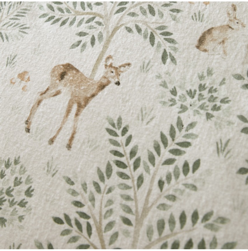 Hand-painted watercolour animals dance amongst evergreen trees on this luxurious 100% brushed cotton. The bedding set is fully reversible with a charming large natural coloured check on the other side for 2 great looks in 1. Let the magic of the forest embrace you in the comfort of your own home