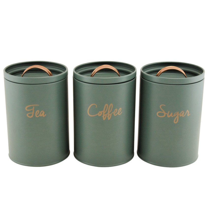Clearly labelled for tea, sugar and coffee, making it easy to identify contents at a glance.